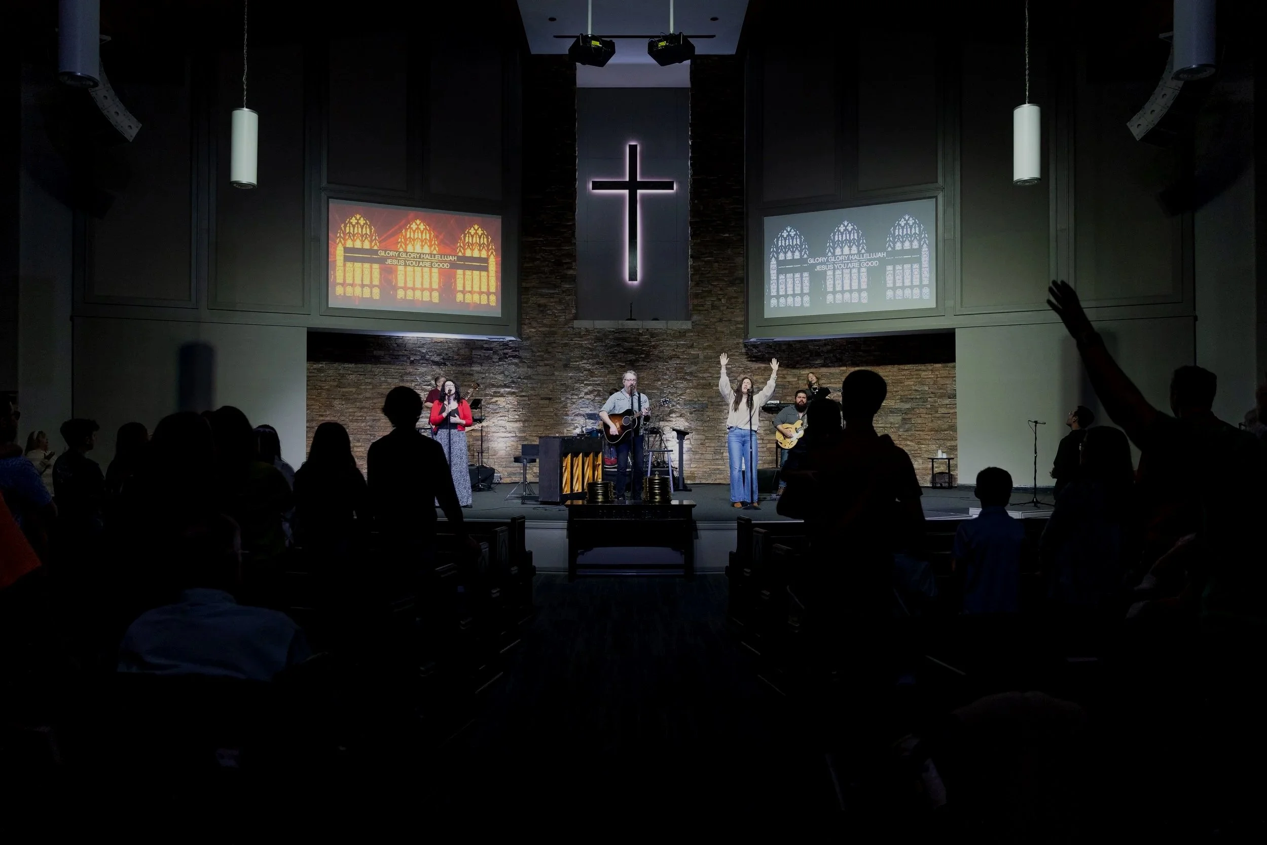 Worship is a proper response to the glory of God and a common practice for all disciples of Jesus. We gather weekly to worship God, celebrate the Gospel, and encourage one another. As we pray, sing, proclaim God's Word, partake in the Lord's Supper, serve, and give, we stir up one another to love and good works (Hebrews 10:24). Our goal for corporate worship is not to put on a performance, but to create an environment to worship God as He desires — in spirit and truth (John 4:24).